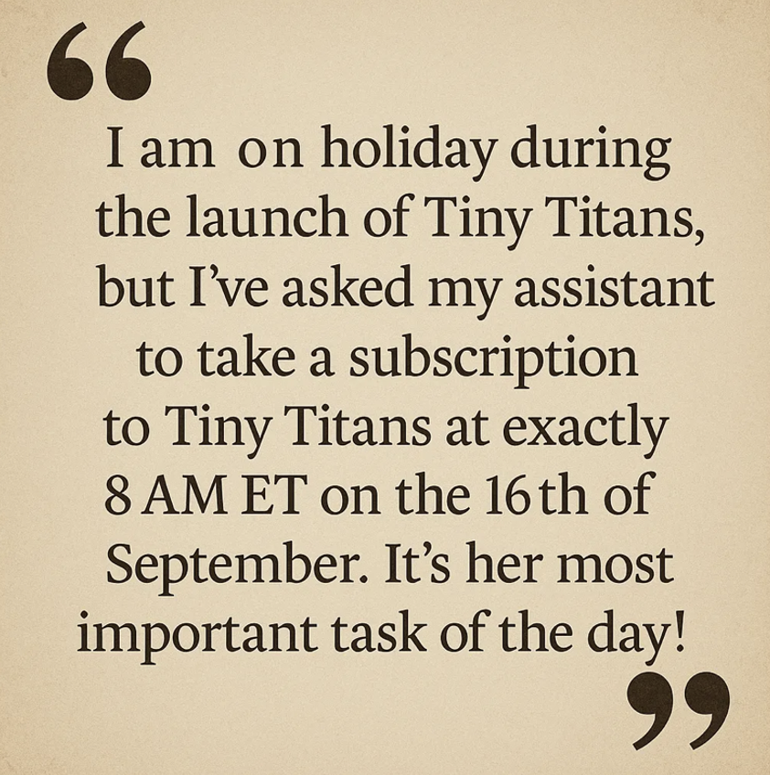 Next week, I’m hosting an exclusive live webinar, for Tiny Titans Partners only.